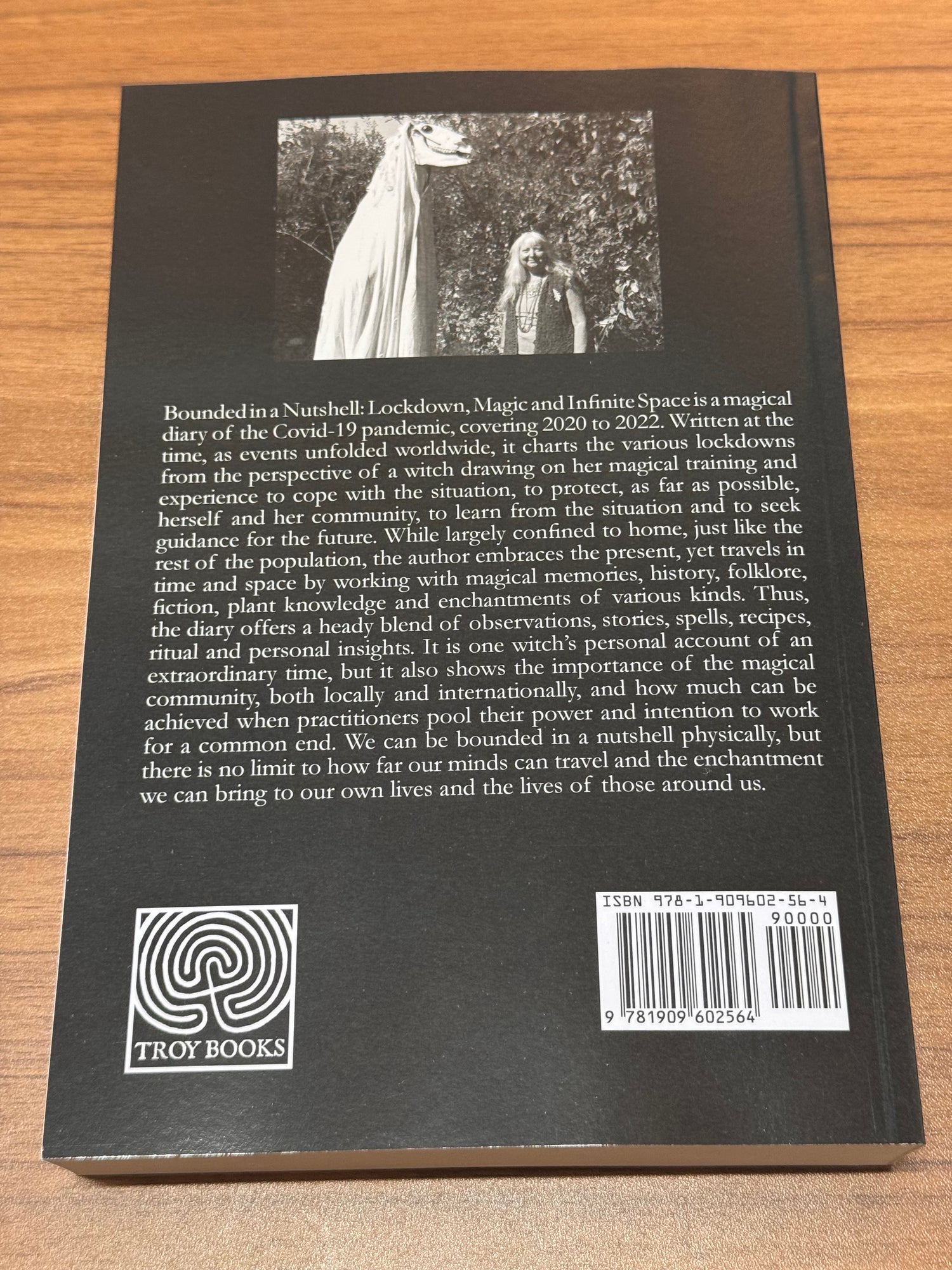 Bounded in a Nutshell: Lockdown, Magic and Infinite Space is a magical diary of the Covid-19 pandemic, covering 2020 to 2022. Written at the time, as events unfolded worldwide, it charts the various lockdowns from the perspective of a witch drawing on her magical training and experience to cope with the situation, to protect, as far as possible, herself and her community, to learn from the situation and to seek guidance for the future.