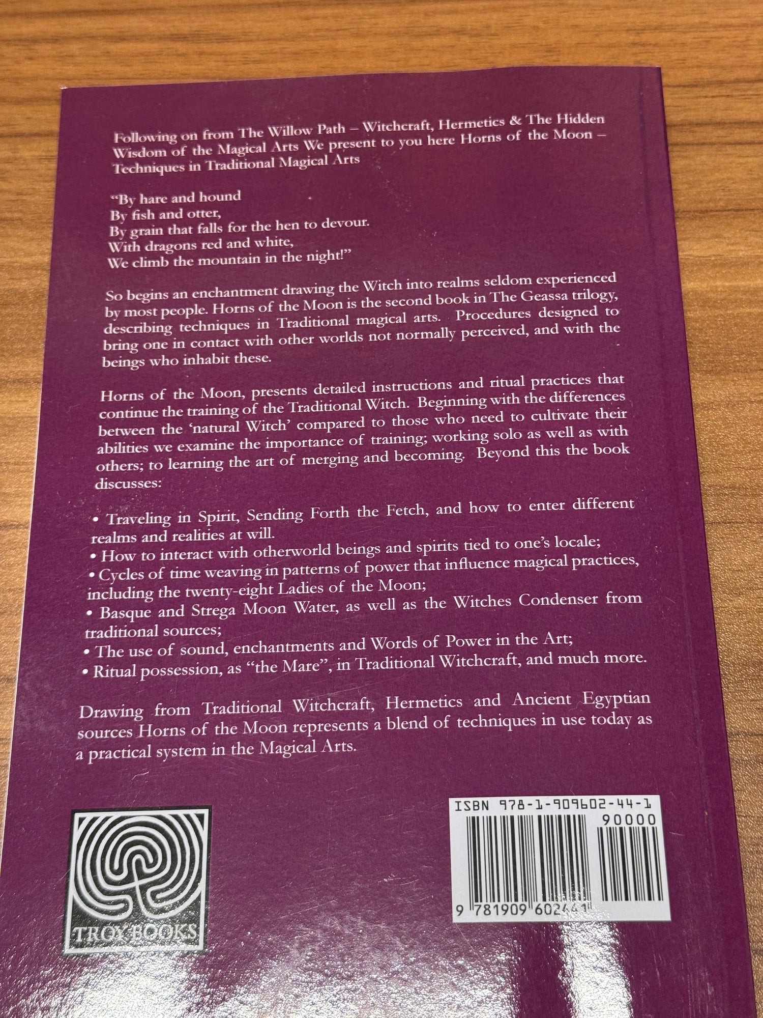 So begins an enchantment drawing the Witch into realms seldom experienced by most people. Horns of the Moon is the second book in The Geassa trilogy, describing techniques in Traditional magical arts. Procedures designed to bring one in contact with other worlds not normally perceived, and with the beings who inhabit these.
