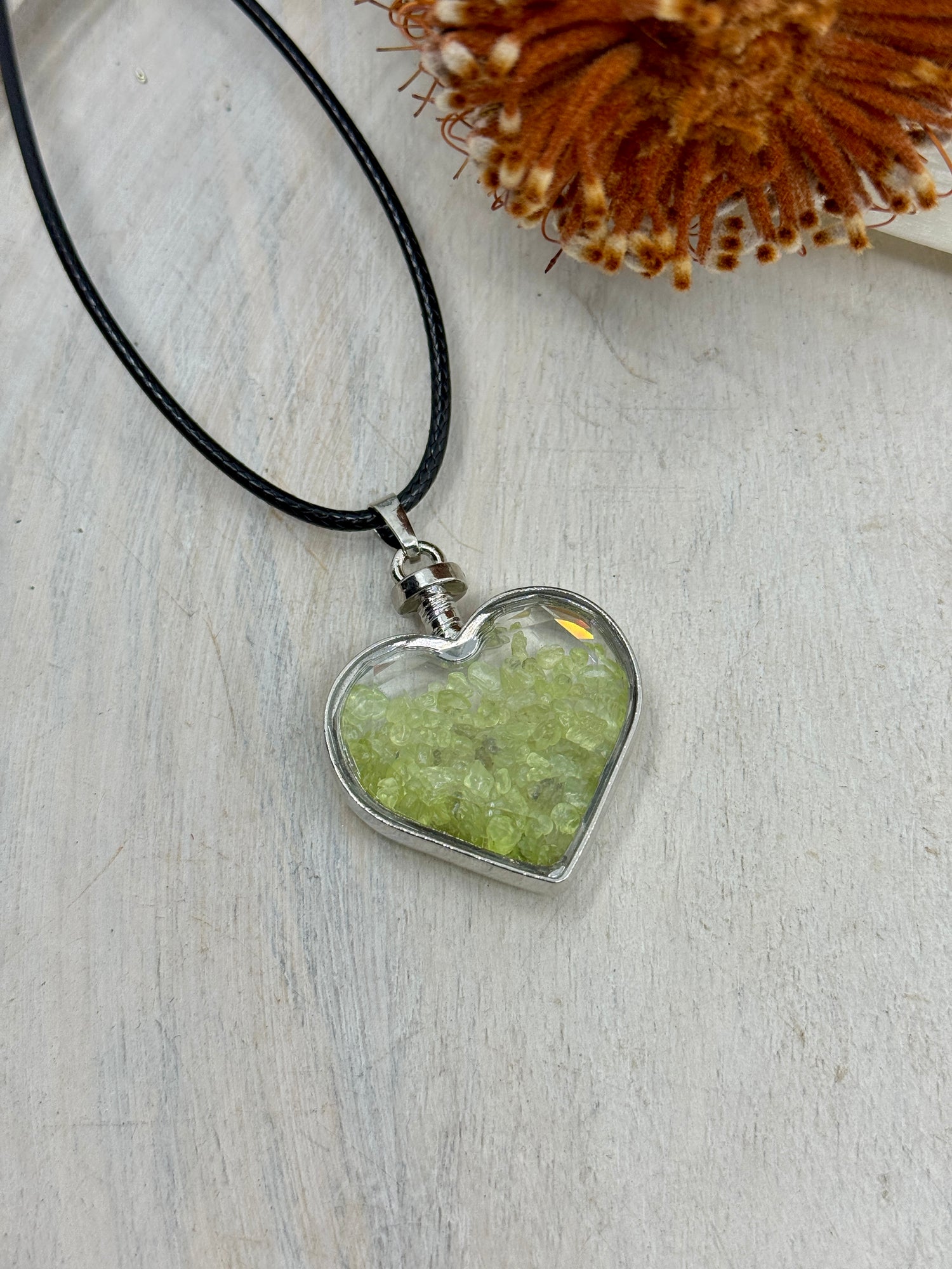 Peridot Heart Bottle Pendant – Stone of Renewal, Abundance & Joy