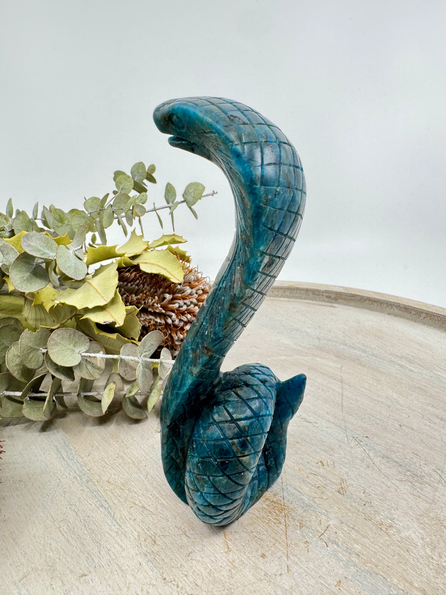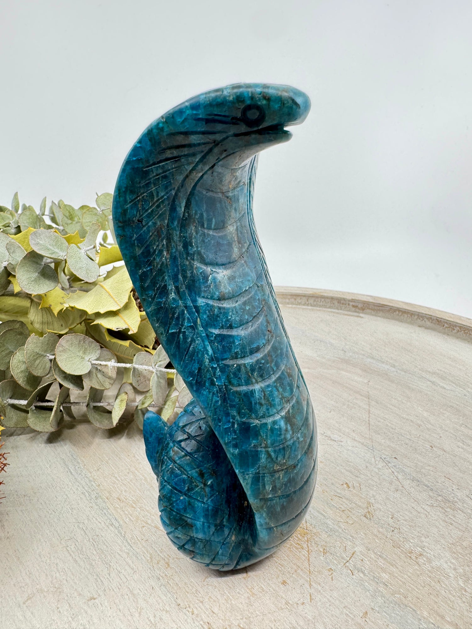 Blue Apatite Snake Carving 15cm – Stone of Wisdom, Transformation & Intuition