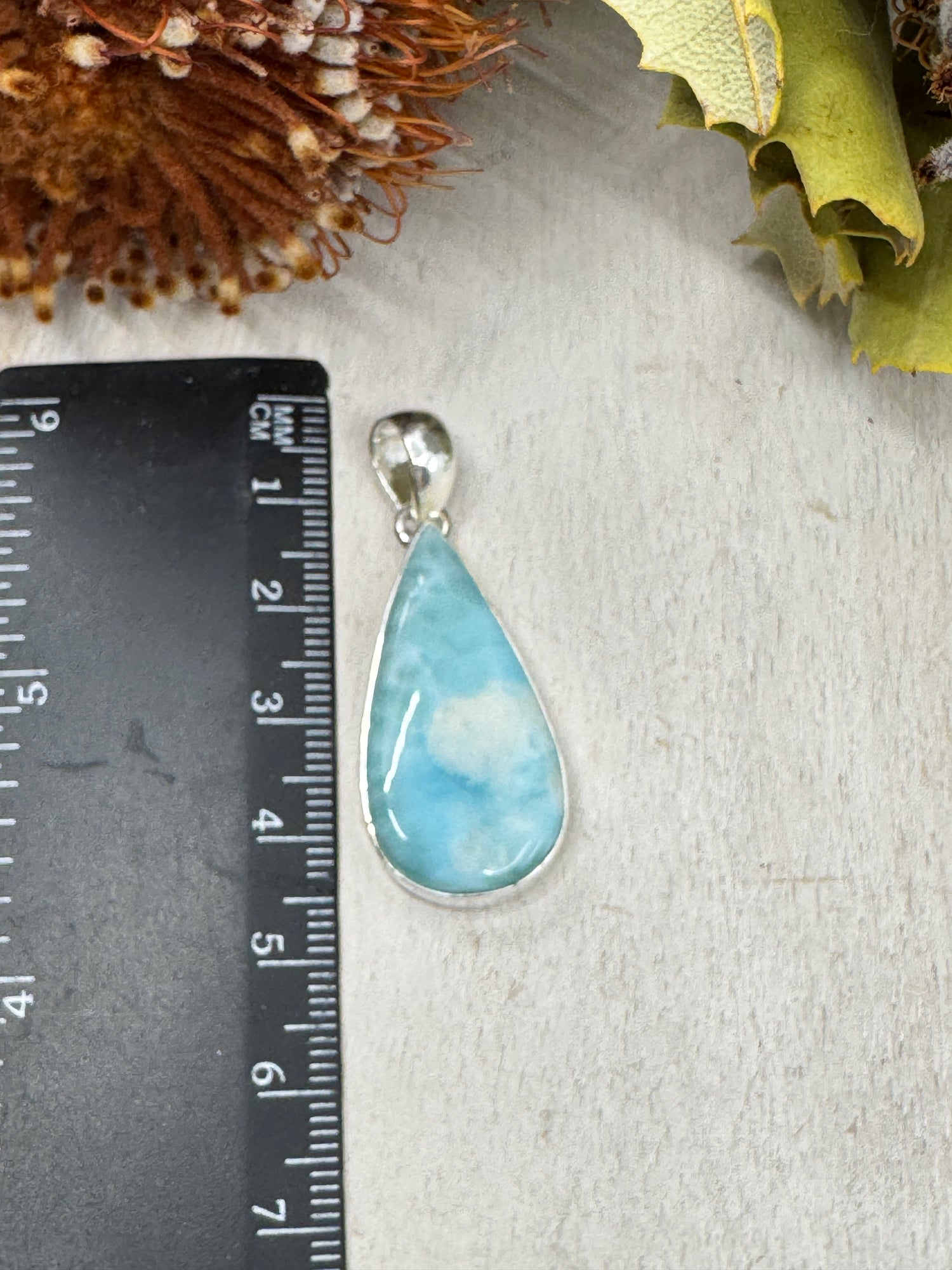 Larimar Pendant #2 – 7.56g (4.5x1.8cm) – .925 Silver – Stone of Calm, Communication & Divine Feminine Flow
