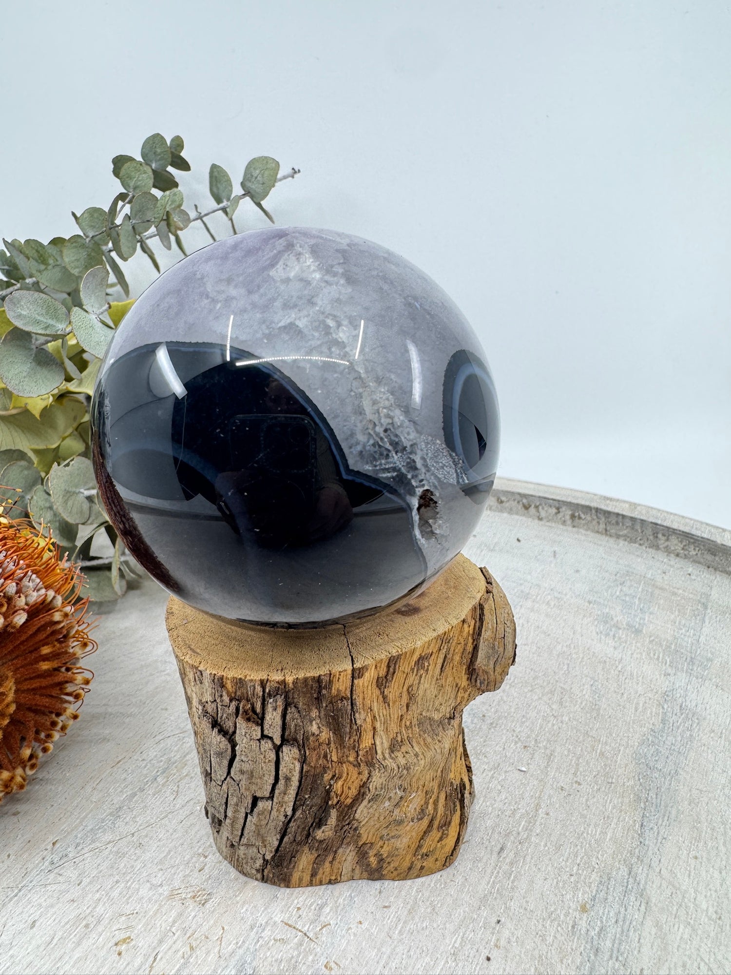 Banded Black Agate & Amethyst Sphere 325g (6cm) – Stone of Balance, Protection & Spiritual Harmony