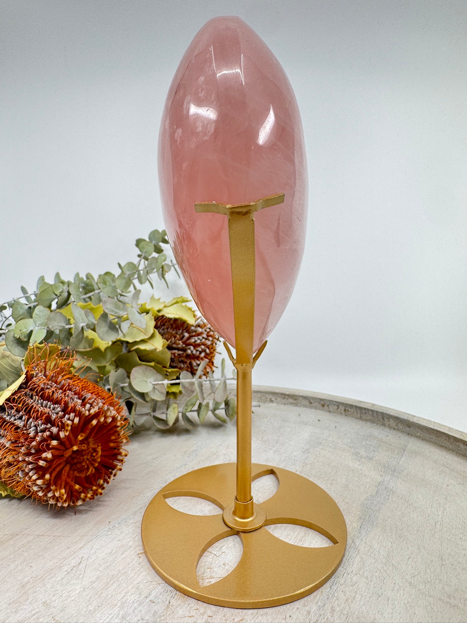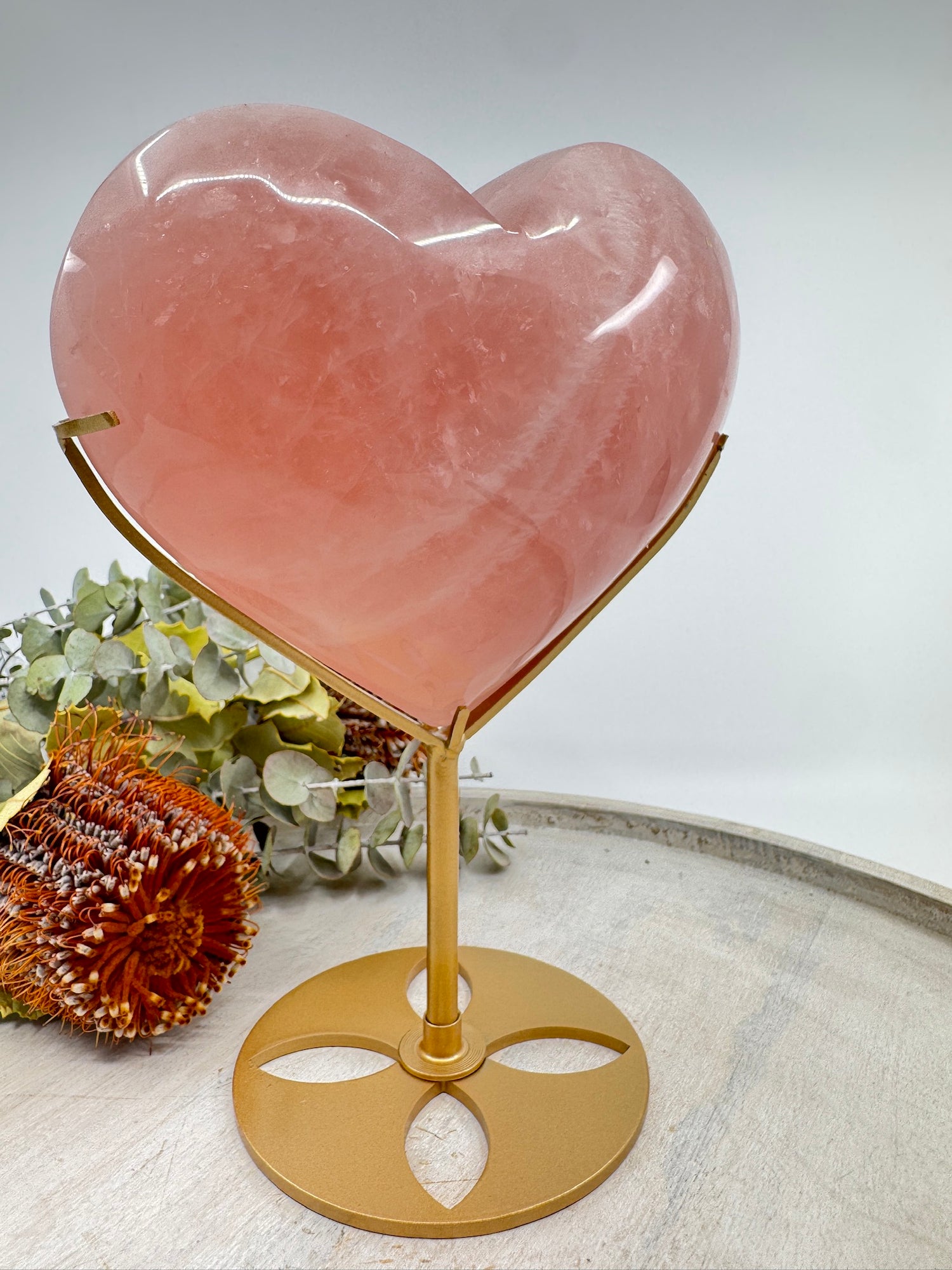 Large Rose Quartz Heart on Gold Stand 1.536kg (16x13cm) – Stone of Love, Healing & Compassion