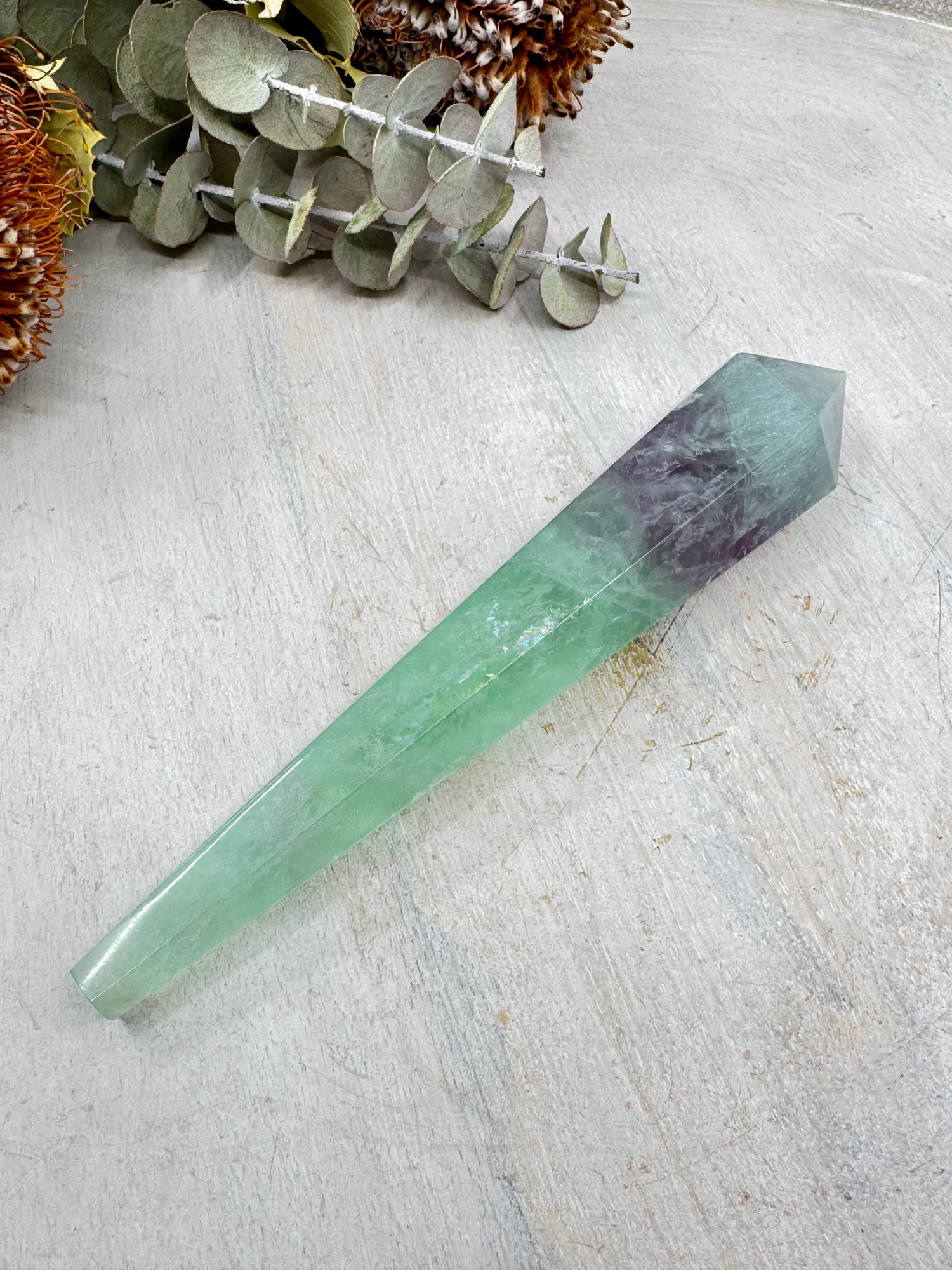 Rainbow Fluorite Wand #3 – 165g (16.5x3cm) – Stone of Intuition, Calm & Higher Guidance