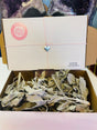 This sage box is great to have on hand, it is grown on our property and comes in a box with a selection of loose leaves, tips and stalks-which are perfect for making wands, or grounding down into a sage powder. Smells very strong and amazing.